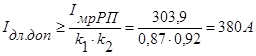 Iдл.доп ≥ IмрРП / (k1 ∙ k2 )