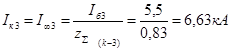 Для вычисления коэффициентов чувствительности защит рассчитаем ток двухфазного короткого замыкания (как минимальный ток КЗ) в конце кабельной линии.