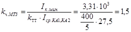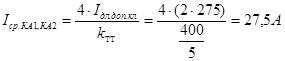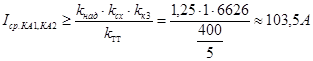 Согласно рекомендациям § 11.1 [2] в данном случае ток срабатывания реле КАЗ, КА4 следует рассчитать следующим образом: