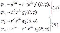 ,так как асимптотически рассеянную волну можно рассматривать как состоящую из ряда плоских волн, распространяющихся из некоторого центра в различных направлениях [6]. Поэтому можно написать
