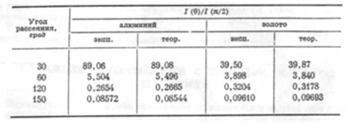 при рассеянии электронов золотом с энергиями в диапазоне от 45 до 245 кэВ на угол