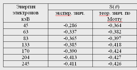 , полученные Спиваком, которые представлены в книге Мотта , со значениями, рассчитанными по Мотту и по Вонгу, и получили, что более близкими к эксперименту являются значения, рассчитанные по Вонгу. Данная функция используется в детекторах Мотта, которые в настоящее время являются основным средством для анализа поляризации электронов, поэтому необходимо уметь правильно ее рассчитывать [4].