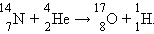 Резерфорд бомбардировал атомы азота α-частицами. При соударении частиц происходила ядерная реакция, протекавшая по следующей схеме: