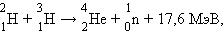 выделяется 3,5 МэВ/нуклон. В целом в этой реакции выделяется 17,6 МэВ. Это одна из наиболее перспективных термоядерных реакций.