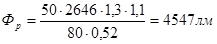 Значение коэффициентов отражения поверхностей помещения принимаем равным Рh = 50% P = 30% Pp = 10%
