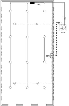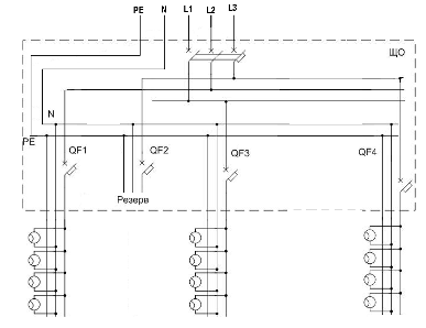 рис.3 Принципиальная трехлинейная схема групповой сети освещения.