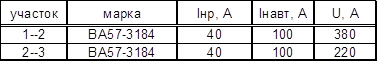 По расчетному току для участка 2-13 выбираем провод АПУН, r0 = 1,98 Ом/км, Iдоп = 75 А, сечение - 15,9 мм2 . Для участка 1-2 ― выбираем провод АПВ, r0 = 0,75 Ом/км, Iдоп = 180 А, сечение - 50 мм2 .