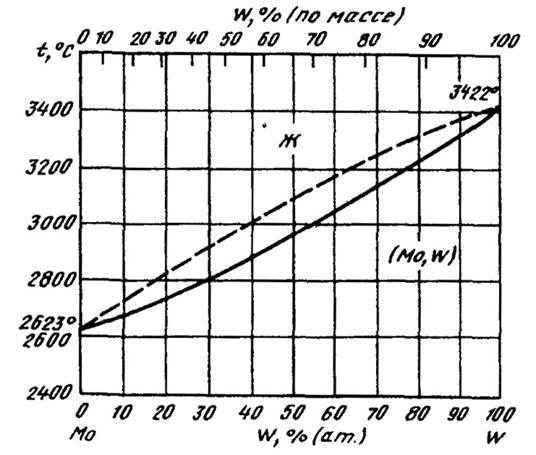 Диаграмма состояния системы молибден-вольфрам (Mo-W)