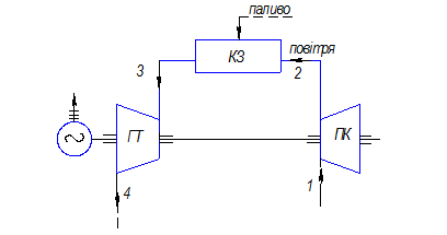 Рис. 3.1 – Принципова схема ГТУ з ізобарним підведенням тепла