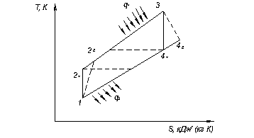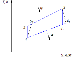 Рис. 3.4 – Ідеальний регенеративний цикл ГТУ з ізобарним підведенням тепла