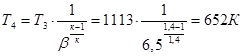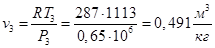 Точка 3 : Р3 =Р2 =0,65 МПа, Т3 =840+273=1113 К.