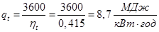 Для ГТУ з генерацією тепла внутрішній ККД установки визначається за формулою: