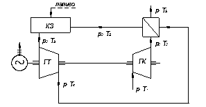 Рис. 3.3 – Принципова схема ГТУ з регенерацією тепла