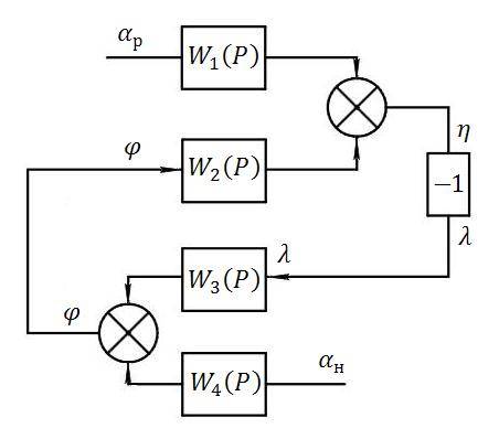 W1P=-KΨdрp- передаточная функция регулятора по настройке αP;