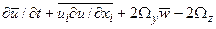 Турбулентные напряжения в данной работе параметризуются через сдвиги волновых скоростей по гипотезе Сент-Гелли с введением коэффициентов горизонтальной и вертикальной турбулентной вязкости и диффузии [6]Введём безразмерные переменные