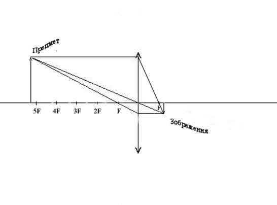 4. Щоб отримати зображення такого самого розміру як предмет потрібно розмістити предмет на відстані від лінзи рівній подвійному фокусі.