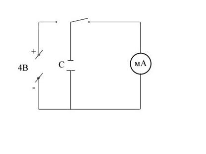 Обладнання: набір конденсаторів, джерело електроживлення, перемикач, провідники.
