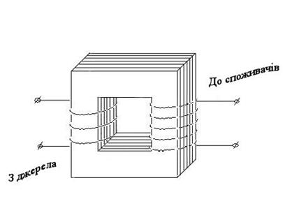 Трансформатор – пристрій, який перетворює змінний струм однієї напруги у змінний струм іншої напруги при незмінній частоті.
