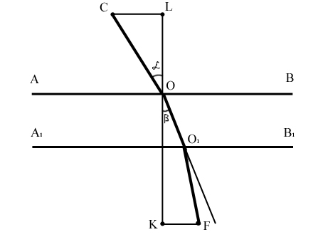 Обладнання: скляна пластинка з паралельними граннями, аркуш паперу, шпилька, лінійка, олівець.