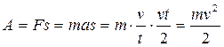 Предположим что тело массой mпод действием силы F начинает двигаться из состояния покоя и разгоняется до скорости v. тогда тело начнет двигаться с постоянным ускорением и совершит перемещение s.