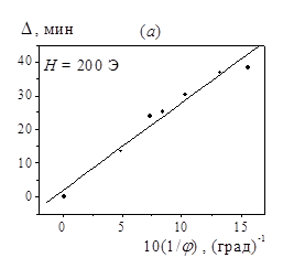 Зависимости aav и D от величины магнитного поля - тривиальные следствия нашей модели. Нечто новое, однако, обнаруживается после сравнения результатов измерений при H = 4 Э, для которых углы aav одинаковы, но величина D на рис. 1в существенно меньше, чем для двух других состояний. Для обоснования того, что этот результат соответствует гипотезе о метастабильных состояниях магнитных кристаллов, содержание которой впервые изложено в статье [2], необходимы дополнительные исследования, методика которых выглядит следующим образом.