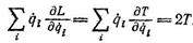 где Т – квадратичная функция скоростей. Применяя к ней известную функцию Эйлера об однородных функциях, получим: