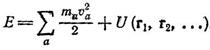 Таким образом, энергия системы может быть представлена в виде суммы двух существенно различных членов: кинетической энергии, зависящей от скоростей, и потенциальной энергии, зависящей только от координат частиц.