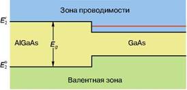 Рис. 1 Енергетичні зони на межі двох напівпровідників - гетероструктурі.