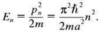 Тут n - номер квантового стану. Визначивши звідси дозволені значення імпульсу, знайдемо і рівні енергії в ямі: