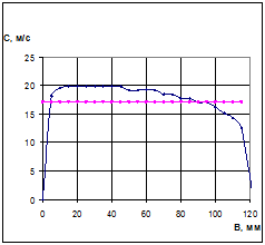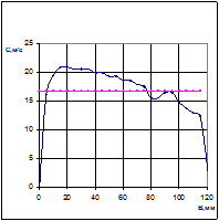 Рисунок 5 – Эпюра скорости на выходе в криволинейный канал