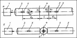 Определение акустических, а затем и упругих свойств импульсным динамическим методом обычно ведут путем прямого прозвучивания и продольного профилирования образцов горных пород. Для прозвучивания образца (рис. 6.3, а) к одному из его торцов прижимают ультразвуковой излу-