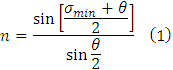 Преломляющий угол θ призмы, имеющей форму острого клина, равен 2°. определить угол наименьшего отклонения σmin луча при прохождении через призму, если показатель преломления n стекла призмы равен 1,6.