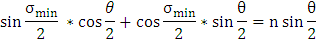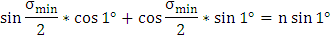 Угол наименьшего отклонения луча от первоначального направления, связан с показателем преломления вещества призмы формулой: