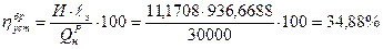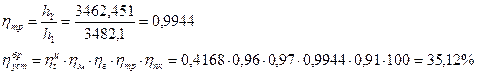 Подсчитаем КПД установки (брутто) на клеммах электрогенератора: