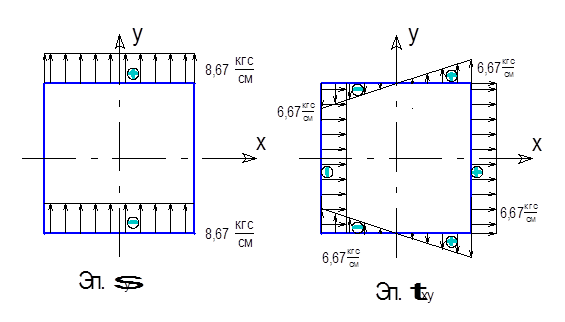 Найти общие выражения для напряжений sх , sу , tху (объемные силы не учитывать) и построить эпюры этих напряжений для контура пластины.