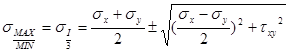 В этой точке напряжения в основных площадках. sх =0, sу =-1,33, tху =3,33,
