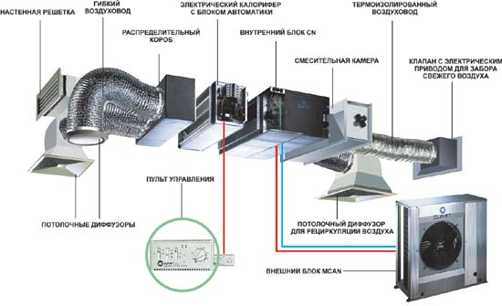 Рис 11. Типовая схема построения сплит-системы с приточной вентиляцией. |