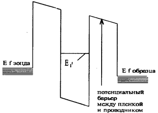На величину It влияют также другие потенциальные, барьеры, которые могут возникнуть при исследовании реальных поверхностей. Например, если исследуемая поверхность покрыта какой-либо неоднородной пленкой (это может быть слой окислов, адсорбаты или специально нанесенная пленка, то схема туннелирования будет выглядеть следующим образом