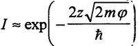 В приближении простейшей одномерной модели туннелирования электрона через прямоугольный потенциальный барьер высотой Fi, зависимость туннельного тока I от ширины барьера z выражается экспоненциальным множителем