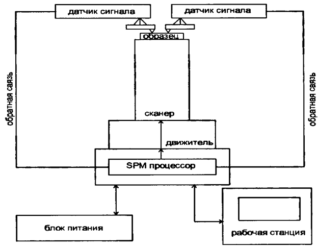 На (Рис.10) схематично изображены составляющие компоненты присущие СЗМ;