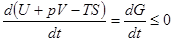 Из этой формулы следует, что необратимый процесс, протекающий при постоянных температуре и давлении, сопровождается уменьшением термодинамического потенциала Гиббса. По достижении равновесия G перестает изменяться со временем. Таким образом, при неизменных Т и р равновесным является состояние, для которого термодинамический потенциал Гиббса минимален.