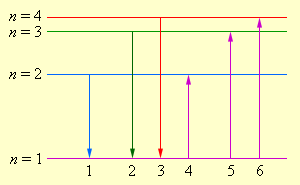 На рисунке представлена диаграмма энергетических уровней атома водорода. Какой цифре соответствует переход с поглощением фотона наибольшей частоты?