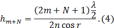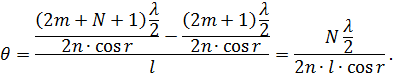 где hm и hm + N - толщина клина в месте интерферентной полосы, соответствующей номерам m и (m+N);