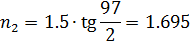 4. Естественный луч света падает на полированную поверхность стеклянной пластины, погруженной в жидкость. Отраженный от пластины луч составляет угол φ = 97о с падающим лучом. Определите показатель преломления жидкости, если отраженный свет максимально поляризован.