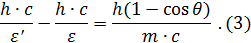 Выразив λ и λ′ через энергии фотонов ε и ε′, воспользовавшись формулой