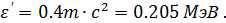 Ответ: энергия рассеянного фотона ε'=0.205 МэВ, кинетическая энергия электрона отдачи Tе =0.307 МэВ.