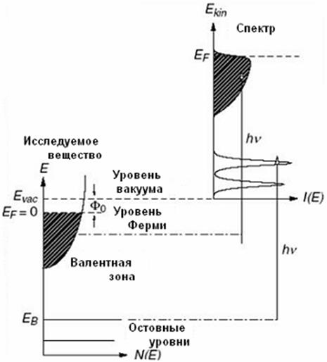 hν = Еkin + ЕВ + Фо , где Фо = Еvacuum – ЕFermi ;