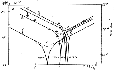 Якщо ж відома з експерименту концентрація носіїв струму, то можна визначити константи рівноваги реакцій утворення власних атомних дефектів.