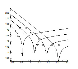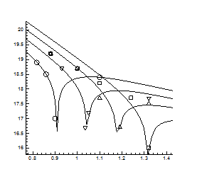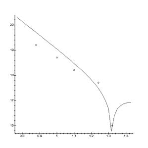 > DataE:=[[0.88,19.2], [1.0,18.7], [1.1,18.2], [1.24,17.7], [1.32,16]];