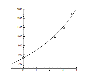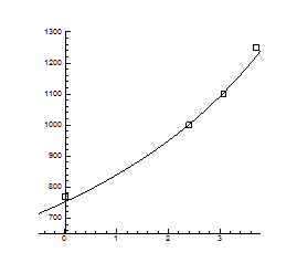 > fit[leastsquare[[x,y], y=a/x+b, {a,b}]]([[770,1250],[21.436,39.055]]);